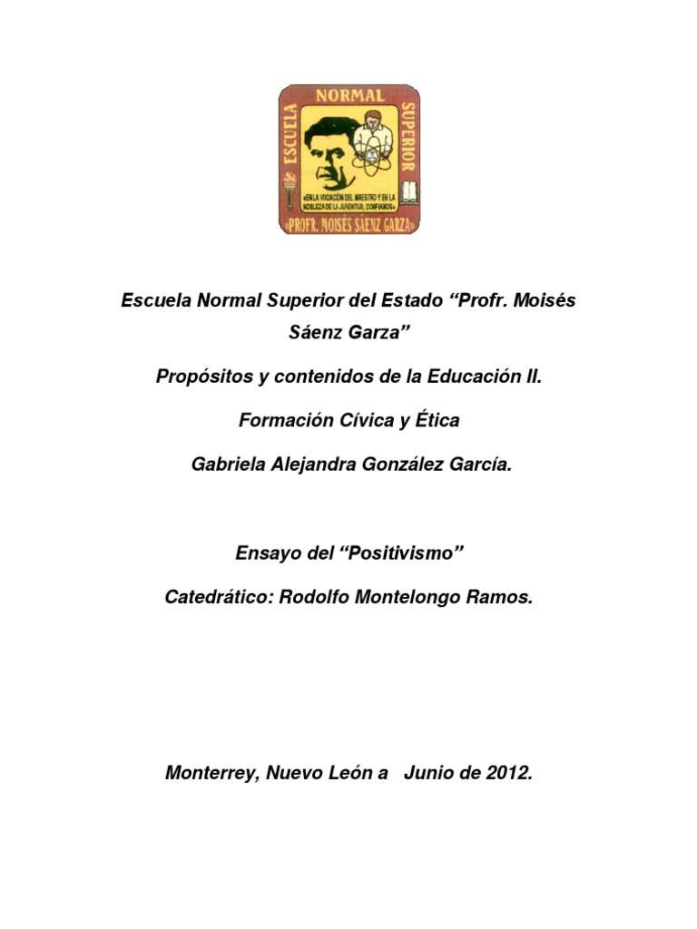 Ensayo del Positivismo Catedrtico: Rodolfo Montelongo Ramos.