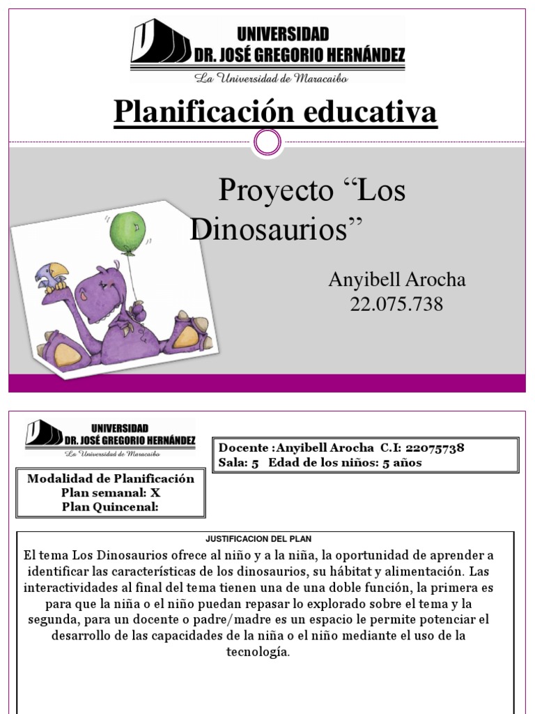 Docente :Anyibell Arocha C.I: 22075738 Sala: 5 Edad de los nios: 5 aos Modalidad de Planificacin Plan semanal: X Plan Quincenal: