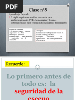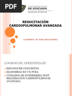 4. RESUCITACIN CARDIOPULMONAR Y CEREBRAL Comprende un conjunto de maniobras encaminadas a revertir el estado de PCR, sustituyendo primero, para intentar reinstaurar despus, la respiracin y circulacin espontneas. Se divide en: 4.1 RCP Bsica. 4.2 RCP Avanzada. 4.3 Cuidados Intensivos Prolongados. 5. SECUENCIA DE REANIMACIN CARDIOPULMONAR BSICA