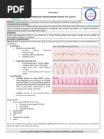 4. DIAGNOSTICO ELCTRICO Existen tres modalidades de PCR 4.1 Fibrilacin Ventricular (FV) o Taquicardia Ventricular sin Pulso (TVSP). La FV es el ritmo ECG inicial ms frecuente en pacientes que presentan PCR secundaria a enfermedad coronaria. La FV degenera en Asistolia, de forma que despus de 5 minutos de evolucin sin tratamiento solo en menos de un 50% de las vctimas se comprueba su presencia. Es de vital importancia el poder realizar una desfibrilacin precoz, ya que se han comprobado supervivencias inmediatas de hasta un 89% cuando la FV es presenciada y la desfibrilacion es instantnea, descendiendo sta supervivencia en aproximadamente un 5% por cada minuto perdido antes de realizar la DF. 4.2 Asistolia. Constituye el ritmo primario o responsable de la aparicin de una situacin de PCR en el 25% de las acontecidas en el ambiente hospitalario y en el 5% de las extrahospitalarias. No obstante, se encuentra con ms frecuencia al ser la evolucin natural de las FV no tratadas. Su respuesta al tratamiento es mucho peor que la de la FV, cuando es causada por enfermedad cardiaca, presentando una supervivencia menor de un 5%. Las tasas de supervivencias pueden ser mejores cuando se presenta asociada a hipotermia, ahogamiento, intoxicacin medicamentosa, bloqueo A-V completo por afectacin trifascicular, bradicardia extrema, o cuando se trata de un fenmeno transitorio tras la DF de una FV. 4.3 Actividad elctrica sin pulso: Se define como la presencia de actividad elctrica cardiaca organizada, sin traducirse en actividad mecnica (ausencia de pulso arterial central) o TAS < 60 mmHg. En ausencia de flujo en las coronarias las ondas coordinadas en el ECG solo pueden existir de forma transitoria. La presencia de DEM provoca una situacin de muy mal pronstico (supervivencia inferior al 5% cuando est causada por enfermedad coronaria), excepto en aquellos casos en que se trata de un fenmeno transitorio tras la DF o es secundaria a una causa rpidamente corregible.