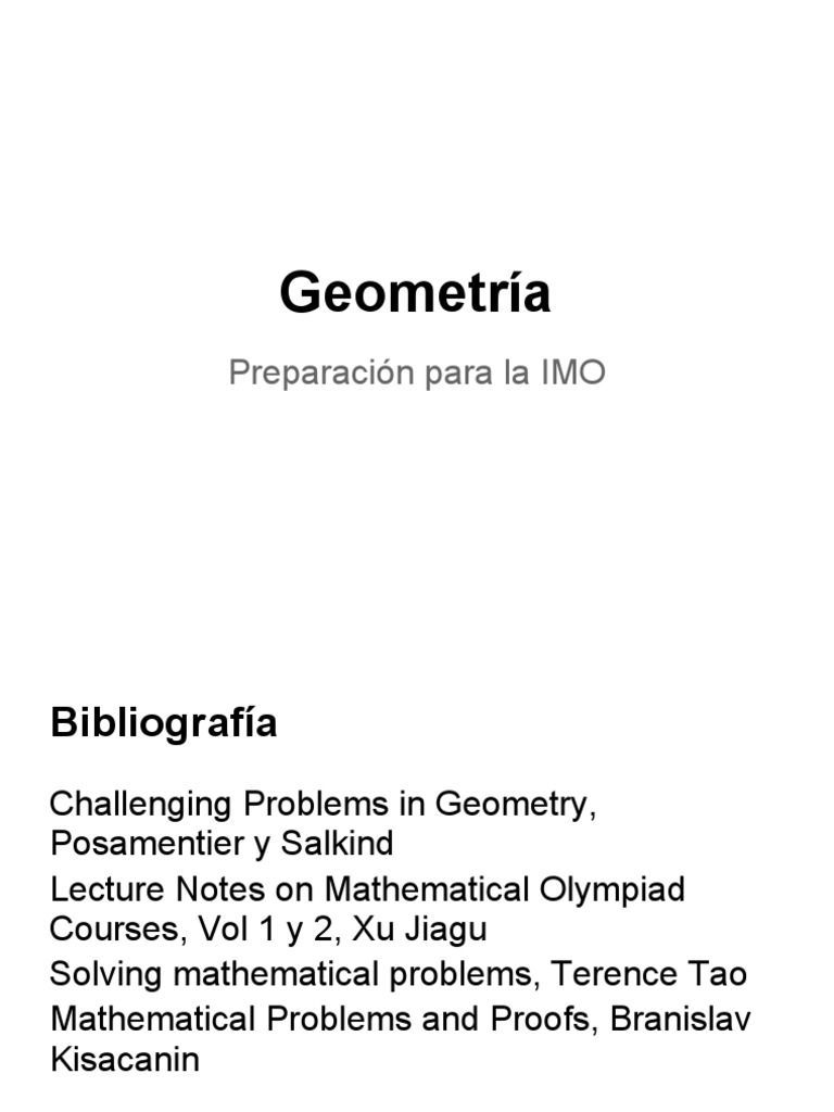 Challenging Problems in Geometry, Posamentier y Salkind Lecture Notes on Mathematical Olympiad Courses, Vol 1 y 2, Xu Jiagu Solving mathematical problems, Terence Tao Mathematical Problems and Proofs, Branislav Kisacanin