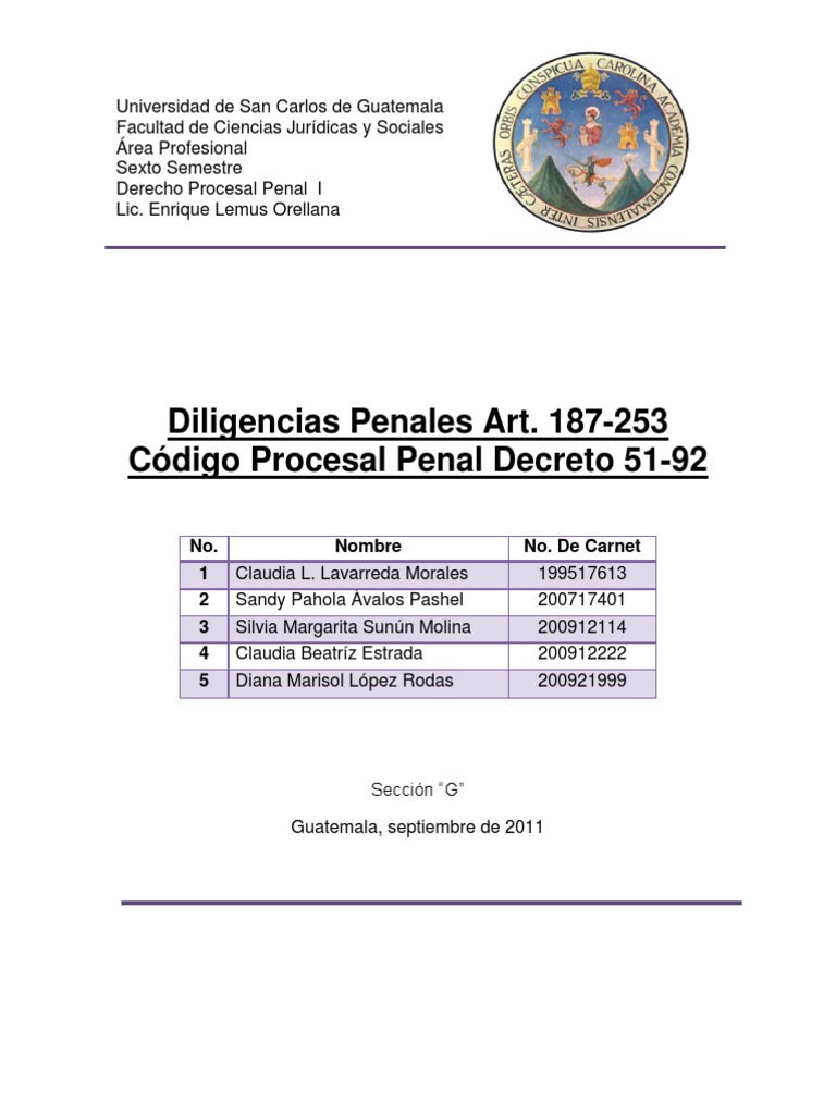 Diligencias Penales Art. 187-253 Cdigo Procesal Penal Decreto 51-92