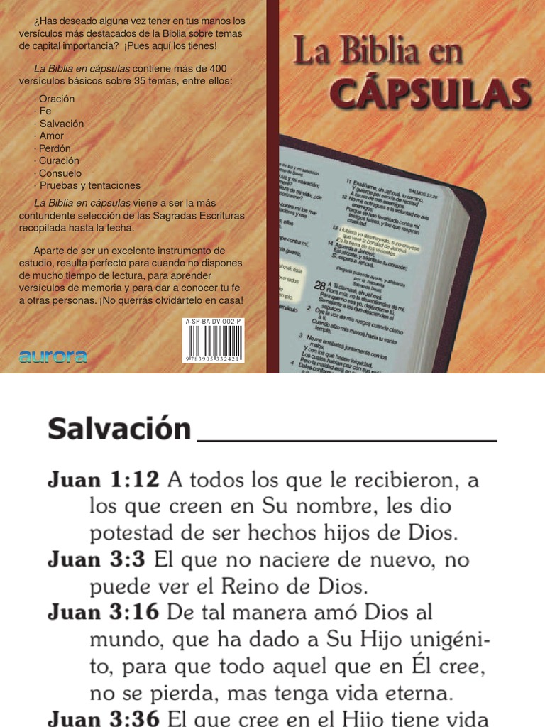 Pues aqu los tienes! La Biblia en cpsulas contiene ms de 400 versculos bsicos sobre 35 temas, entre ellos: