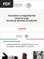 Para utilizar adecuadamente el cinturn de seguridad es necesario: Regular el asiento y respaldo de tal manera que viaje cmodamente. Cada asiento es para una sola persona. La cinta superior debe pasar por el hombro y no por el cuello o la garganta. Sujtelo cmodamente pero firme. La cinta inferior debe cruzar a travs de las caderas y no a travs del estomago. Si una mujer embarazada viaja en automvil, deber colocar la cinta superior entre los senos y la cinta inferior debajo del vientre. El cinturn no debe quedar torcido y no debe rozar con aristas o bordes que lo puedan desgastar.