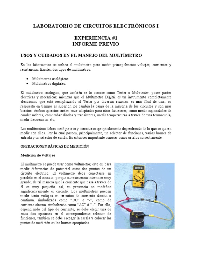 LABORATORIO DE CIRCUITOS ELECTRNICOS I EXPERIENCIA #1 INFORME PREVIO