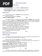 Para ondas sinusoidales el Voltaje RMS viene dado por: V RMS = donde V0 es el voltaje mximo. Mediciones de corrientes El multmetro tambin se puede utilizar como ampermetro para medir la corriente en una rama de un circuito (la unidad de la corriente es el Amperio (A)). El ampermetro debe conectarse en serie en el circuito como lo muestran las Figuras. La resistencia interna del ampermetro es muy pequea para que no modifique el circuito, significativamente. Igual que el voltmetro, el ampermetro puede ser usado para medir corrientes en circuitos de corriente directa y de corriente alterna; como antes, se debe seleccionar la opcin deseada, escoger la escala y colocar las puntas de prueba apropiadamente. V0 2