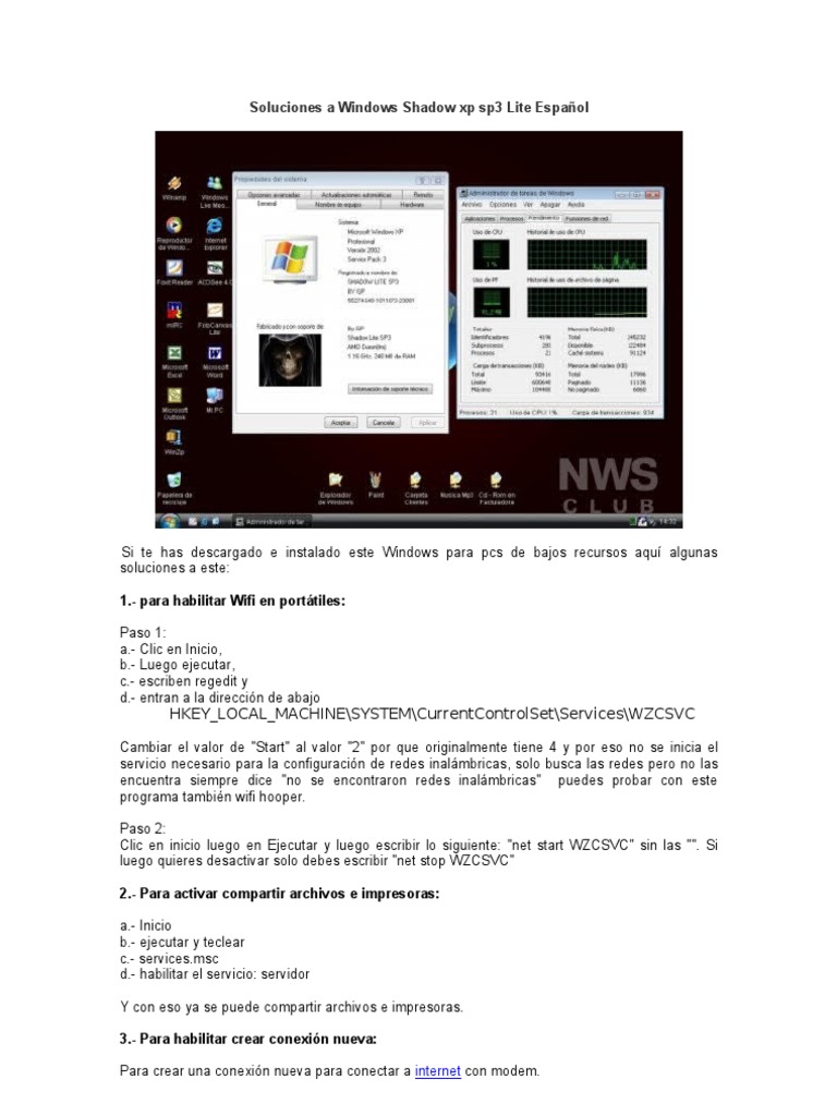 Soluciones a Windows Shadow xp sp3 Lite Espaol