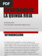 1. DESCRIPCIN DEL PRODUCTO 1.1. Presentacin del producto La Quinua (chenopodium qunoa willd) es el grano de origen andino de grandes cualidades nutricionales que Bolivia ofrece al mundo. La quinua real fue el principal alimento de los incas y otras culturas andinas y se produce nicamente en las regiones aledaas a los salares de Uyuni y Coipasa, a 3.600 metros sobre el nivel del mar. La quinua real es el nico grano que provee todos los aminocidos esenciales para el organismo humano (leucina, isoleucina, lisina, metionina, fenilalamina, tereonina, triptofano y valina), con un contenido de protenas promedio de 12.5 a 15% . Comparada con los cereales, la quinua real tiene mayor cantidad de fsforo, potasio, magnesio, hierro y calcio, sin mucho aporte de caloras, hacindola muy apetecible por los consumidores que vigilan su dieta. Bolivia produce en promedio 20.000 TM de quinua al ao, de la que un 60% aproximadamente es quinua real, y las exportaciones registradas para los ltimos aos se acercan a las 4.000 TM en promedio. La quinua posee cualidades superiores a los cereales y gramneas. Se caracteriza ms que por la cantidad, por la calidad de sus protenas dada por sus aminocidos esenciales que la constituyen como: la isoleucina, leucina, lisina, metionina, fenilalamina, treonina, triftfano y valina. Es una de las principales fuentes de protenas con un promedio de 12.5 a 15%. La OMS (Organizacin Mundial de la Salud) considera la quinua real como alimento nico por su altsimo valor nutricional.1