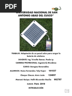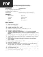 1. PANEL FOTOVOLTAICO Paneles fotovoltaicos utilizados para generar electricidad. CELDAS O CLULAS FOTOVOLTAICAS Son dispositivos formados por metales sensibles a la luz que desprenden electrones cuando los fotones inciden sobre ellos. Convierten energa luminosa en energa elctrica. Estn formados por clulas elaboradas a base de silicio puro con adicin de impurezas de ciertos elementos qumicos, siendo capaces de generar cada una de 2 a 4 Amperios, a un voltaje de 0,46 a 0,48 V, utilizando como materia prima la radiacin solar. Caractersticas: Las celdas solares comerciales se fabrican con lingotes de silicio o arseniuro de galio. de alta pureza (material muy abundante en la arena). En general las clulas tienen potencias nominales prximas a 1Wp, lo que quiere decir que con una radiacin de 1000W/m2 proporcionan valores de tensin de unos 0,5 V y una corriente de unos dos amperios. Los mdulos fotovoltaicos admiten tanto radiacin directa como difusa, pudiendo generar energa elctrica incluso en das nublados. La unidad bsica de las instalaciones fotovoltaicas es, pues, la placa fotovoltaica, que contiene entre 20 y 40 clulas solares; estas placas se conectan entre s en serie y/o paralelo para obtener el voltaje deseado (12V, 14V, etc.). Estas clulas interconectadas y montadas entre dos lminas de vidrio que las protegen de la intemperie constituyen lo que se denomina un mdulo fotovoltaico.