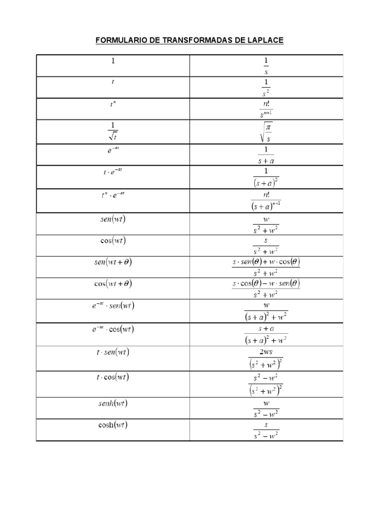 FORMULARIO DE TRANSFORMADAS DE LAPLACE