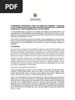 EL COMIENZO DE LA REYERTA Y EL ORIGEN DE LOS DISPAROS El operativo comenz a configurarse en torno a las 7:30 en el camino que daba entrada a la finca. El Comisario GEO Erven Lovera, quien haba estado al mando de otras intervenciones anteriormente, consiguiendo siempre la salida pacfica de los campesinos, estaba al mando del grupo que avanzara hacia la finca. Junto a l, se encontraban los ms de 300 agentes desplazados, adems de la fiscal Ninfa Aguilar y el Fiscal Diosnel Gimnez, como miembros del Ministerio Pblico. En el siguiente vdeo se ve el momento en que Erven Lovera, despus de sobrevolar la zona en helicptero, confirma a otros oficiales y a los fiscales Ninfa Aguilar y Diosnel Gmez que va a comenzar el operativo (NOTA, el helicptero cuenta con una cmara integrada que debe ser solicitada como prueba ya que tuvo que captar la posicin de los campesinos a la perfeccin): Organizacin del operativo antes de la masacre (vdeo) http://www.youtube.com/watch?v=nnU044gcVys