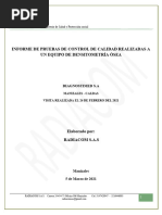 Material necesario para realizar el control: este punto permite objetivar las necesidades de instrumentacin para aplicar el protocolo, a la vez que orienta sobre el procedimiento de medida aconsejado. Es importante destacar la especial trascendencia de contar con equipos de medida bien calibrados y de respuesta fiable. Tiempo estimado para la realizacin de la prueba: el tiempo indicado se refiere, salvo que se indique expresamente lo contrario, a una unidad (monitor, chasis, etc.). Esta informacin sirve como referencia orientativa al usuario sobre la duracin de la prueba en condiciones normales. Los tiempos indicados se estiman incluyendo el tiempo de preparacin del control, la realizacin de las medidas y del informe correspondiente. Junto con el punto siguiente, debera servir para objetivar las necesidades de personal imprescindibles para aplicar el protocolo. Personal capacitado para realizar el control: establece, desde un punto de vista general, la cualificacin de la persona que debera realizar el control, con independencia de que todo el proceso deber estar siempre supervisado por un especialista en radiofsica hospitalaria. Se establecen tres categoras: operador del equipo, tcnico y especialista. Antecedentes: en este punto se citan las referencias bibliogrficas especficas relacionadas con el parmetro y que pueden ser de utilidad en el caso de que sea necesario completar la informacin de alguno de los apartados de la ficha de control. Se han incluido referencias cuando en ellas se detalla de forma clara el procedimiento de medida o bien cuando la tolerancia asignada ha sido tomada de dicha fuente. Observaciones: se hacen precisiones sobre el procedimiento de medida o sobre otros aspectos de inters del parmetro. Se incluye al final del protocolo una seccin de bibliografa, que corresponde a art-