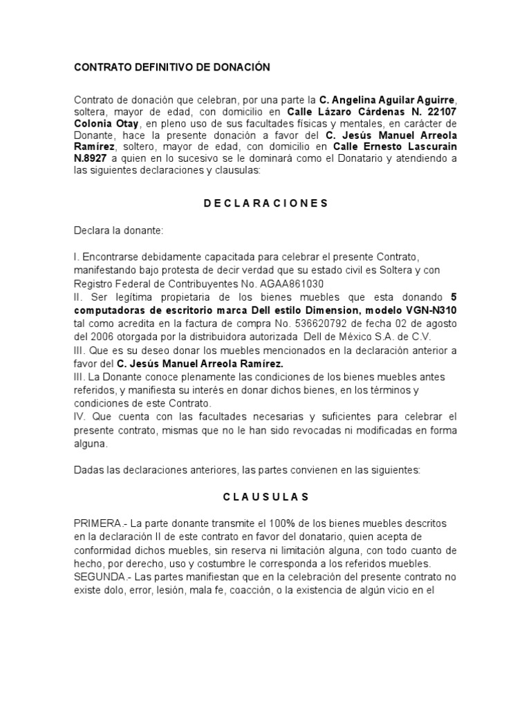CONTRATO DEFINITIVO DE DONACIÓN