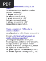 Como puedo convertir grados sexagesimales a decimales, radianes y viscerversa?