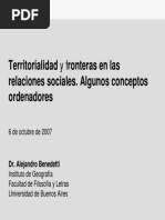 Histricamente, para las sociedades latinoamericanas, los debates y disputas fronterizas han tenido igual importancia que otros temas de organizacin espacial, tales como el crecimiento de los centros urbanos, la localizacin de nuevos centros econmicos, incluso la divisin territorial administrativa. Las transformaciones que ha tenido la frontera a lo largo de dos siglos, no solo ha sido consecuencia de la formacin de Estados nacionales, sino de disputas del poder por la apropiacin del espacio entre diferentes actores sociales. Para Barton, en Amrica Latina ha existido un proceso de destruccin y reconstruccin del Estado nacional, en el que han participado diferentes actores sociales; cada uno de esos actores es un sujeto social localizado, que opera a una escala micro por la apropiacin o conservacin de una porcin del territorio.