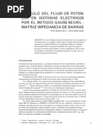 De las impedancias es fcil obtener Ybarra (recuerde considerar las reactancias de los generadores j0.1 que sumados a su respectiva barra como admitancia es j10, para las barras 1 y 2, es por ello que usted puede apreciar que los elementos Y11y Y22 poseen una diferencia de 10mho, se recomienda usar crear Ybarra para verificar), quedando como: Ybarra= 0,330033-j13,30033 0+j0 -0,330033+j3,30033 0+j0 1,376147-j14,587156 -1,376147+j4,587156 -0,330033+j3,30033 -1,376147+j4,587156 1,70618-j7,887486
