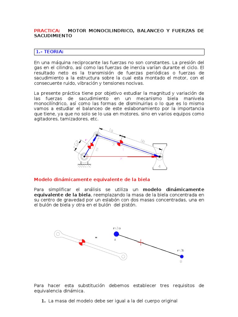 PRACTICA: MOTOR MONOCILINDRICO, BALANCEO Y FUERZAS DE