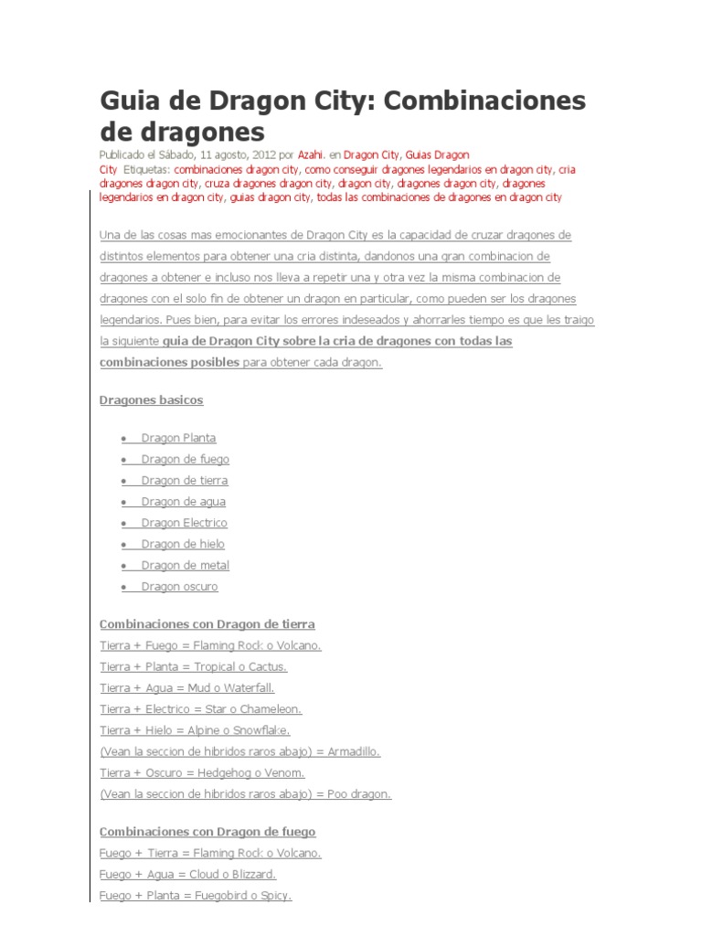 Publicado el Sbado, 11 agosto, 2012 por Azahi. en Dragon City, Guias Dragon City Etiquetas: combinaciones dragon city, como conseguir dragones legendarios en dragon city, cria dragones dragon city, cruza dragones dragon city, dragon city, dragones dragon city, dragones legendarios en dragon city, guias dragon city, todas las combinaciones de dragones en dragon city