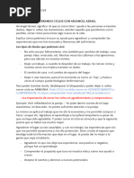 Yo ofrezco mi dolor para transformarme Yo ofrezco mi dolor por todos los que sufren Yo llevo mi dolor desde el corazn hasta el alma Yo acepto mi fracaso como un maestro Yo acepto mi xito como un maestro No voy a ser nunca mas vctima del xito ni del fracaso. Comprendo que mi dolor tiene sentido Y ese sentido es el amor Perdono porque dejo pasar a travs de m Porque puedo vivir en presente Porque en el presente reconozco El significado vivo de mi historia Porque en el presente Puedo entrar en la eternidad de mi ser.