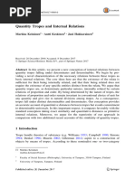 - No estn sometidos a la fuerza nuclear fuerte - Son partculas elementales (aquellas que no se pueden descomponer en otras partculas ms Leptones simples) - Hay seis tipos de leptones: electrn ,mun, taun, neutrino del electrn, neutrino del mun y neutrino del taun - Estn sometidos a la fuerza nuclear fuerte - No son partculas elementales pues estn formados por quarks (partculas de carga e/3, 2e/3) que s son partculas elementales - Los quarks no existen aislados sino que se combinan para formar otras partculas - Hay seis tipos de quarks: up (u), down (d), strange (s), charmed (c), botton (b) y top (t) - Se clasifican en dos grupos: Mesones formados por un quark y su antiquark ejemplo: mesones (piones) y mesones K formado por un grupo de tres quarks ejemplo: protones y neutrones
