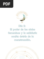 mundo espiritual. Es la fase de introspeccin: de dormir y soar y frenar el ritmo de vida Se podra hablar largo y tendido de los arquetipos femeninos pero este documento slo pretende demostrar que: Las mujeres somos cclicas como la vida y la Tierra, y no lineales como nos han hecho creer y desear ser. La menstruacin es la fase ms interior de la mujer. Puede que quieras estar sola o tengas ganas de aislarte. En algunas culturas tribales, las mujeres se separan del grupo cuando menstran. Es tan grande el contacto con su yo ms ntimo, que los chamanes las temen. Es la fase dnde la mujer es capaz de entrar en los misterios ms profundos de ella misma y de la creacin. Es un tiempo para la lentitud, tanto fsica como mental, el recogimiento, el descanso y la conciencia, donde se hace limpieza de todo lo que ha pasado durante el mes y se puede eliminar todo aquello que se ha detectado como no deseado durante la fase premenstrual. Es, pues, una etapa de destruccin para volver a renacer con nuevas ideas en la fase de la virgen. Es til tomar conciencia de nuestras reacciones cuando aparece el sangrado. Lo rechazamos, nos fastidia que nos venga?, o nos sentimos a gusto y
