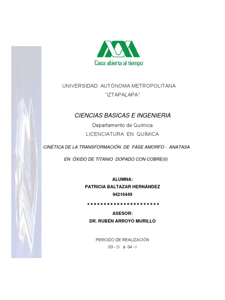 CINTICA DE TRANSFORMACIN DE LA FASE AMORFO - ANATASA EN XIDO DE TITANIO DOPADO CON COBRE(II)