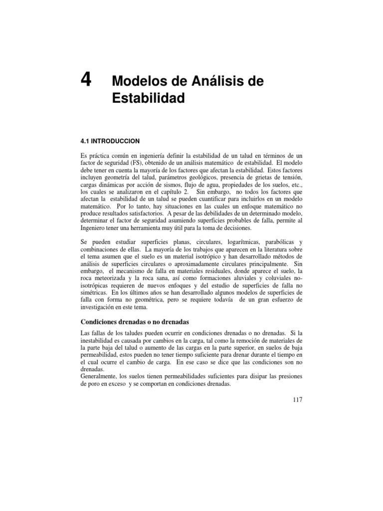 estabilidad en estas condiciones, utilizando procedimientos de esfuerzos efectivos. Sin