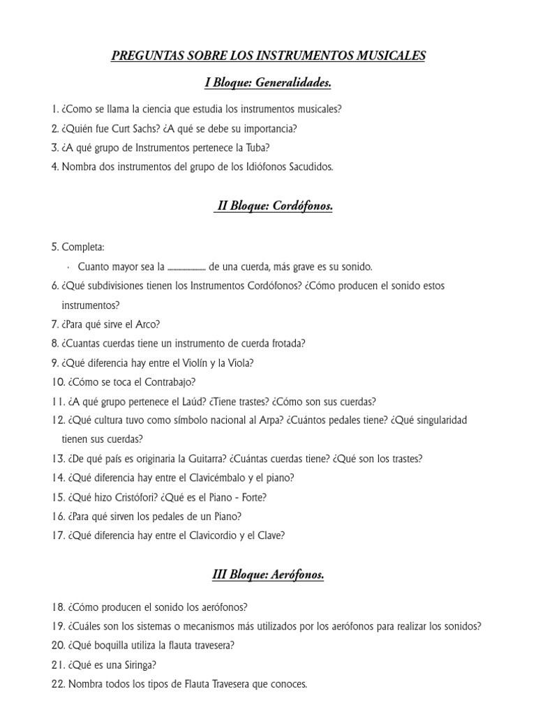 PREGUNTAS SOBRE LOS INSTRUMENTOS MUSICALES