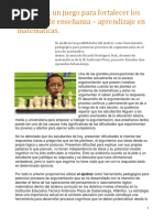 EL JUEGO DE LA RESPONSABILIDAD Hazlo realidad debera, me parece, ser un principio gua en toda la actividad educativa. Por ello, las matemticas se aprenden mejor cuando se hace algo que tiene un propsito real en la vida cotidiana, que cuando se practican ejercicios slo para demostrar que uno los sabe hacer. Una de las grandes cosas de leer literatura es que leer es un propsito real en s mismo. Uno lee literatura por la literatura misma, por el placer que provoca, por el inters en el texto, y por lo que se puede aprender de l.