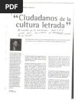 26 El efecto pblico de una experiencia tan productiva es que las personas llegan a conocer la importancia social de la lectura literaria (un conocimiento que nunca se olvida y al que siempre se desea regresar). Descubren de primera mano cmo la lectura la experiencia completa del crculo de lectura- trasciende el entretenimientopasatiempo, el mimo a la hora de dormir o el valor funcional de cada da: cmo, en cambio, nos ofrece imgenes para pensar y un medio para crear y recrear la esencia misma de nuestras vidas individuales y colectivas. Hay quienes diran, incluso se quejaran, de que esto leer y hablar seriamente sobre la lectura- es investir al discurso literario de una significacin metafsica, si no religiosa. Pero es que . . . creo que la tiene.