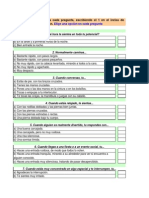 1. Muy rara vez 2. Rara vez 3. A menudo 4. Muy a menudo Dinos cmo te sientes, piensas o actas LA MAYOR PARTE DEL TIEMPO EN LA MAYORA DE LUGARES. Elige una, y slo UNA respuesta para cada oracin y coloca un ASPA sobre el nmero que corresponde a tu respuesta. Por ejemplo, si tu respuesta es Rara vez, haz un ASPA sobre el nmero 2 en la misma lnea de la oracin. Esto no es un examen; no existen respuestas buenas o malas. Por favor haz un ASPA en la respuesta de cada oracin.