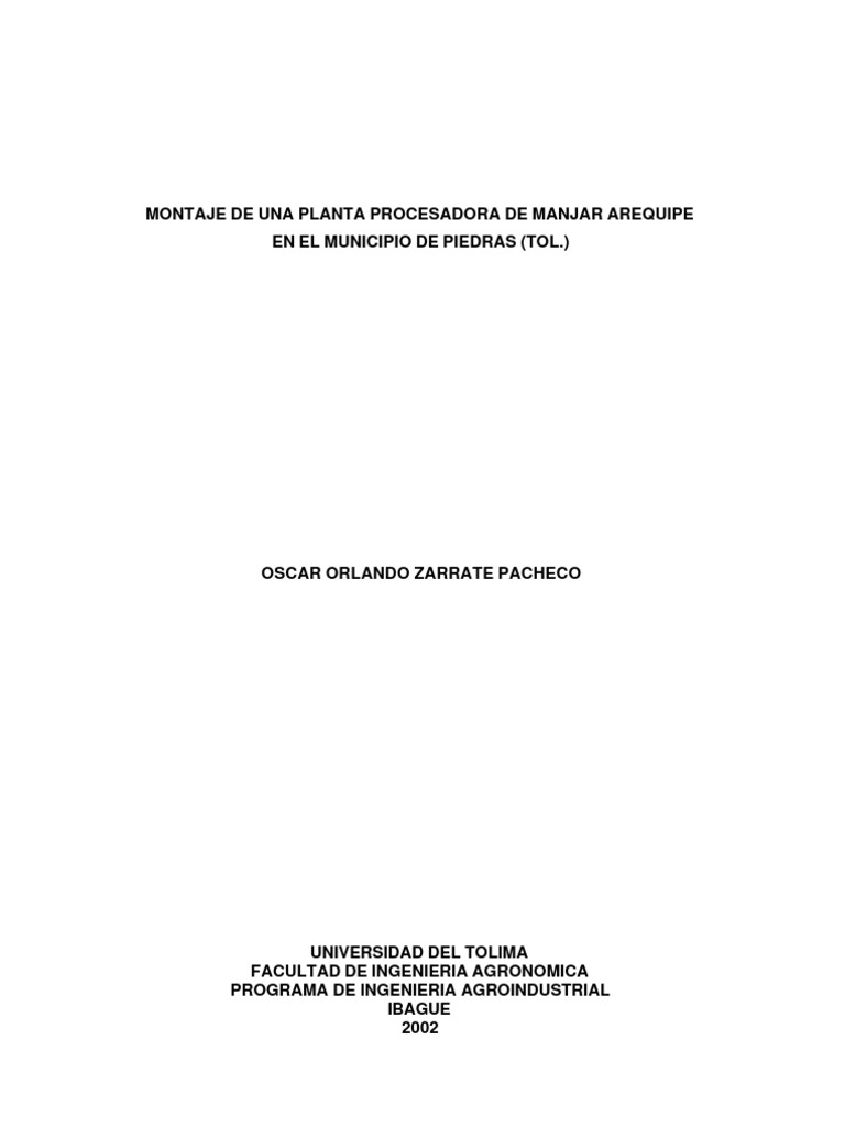 PROYECTO PARA LA PUESTA EN MARCHA DE UNA PLANTA PRODUCTORA DE AREQUIPE EN LA CIUDAD DE IBAGUE UNAD
