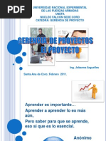 1.1. NATURALEZA Y FUNDAMENTACIN DEL PROYECTO 2. OBJETIVOS 2.1. General 2.2. Objetivos especficos METODOLOGA DETERMINACIN DE LOS RECURSOS 4.1. Talentos Humanos 4.1.1. COORDINADORES: 4.2. Tcnicos 4.3. Materiales 4.4. Financieros ADMINISTRACIN DEL PROYECTO INDICADORES DE EVALUACIN La evaluacin se aplicar en sus momentos: 5.1. Diagnstica. 5.2 Formativa, durante el proceso. 5.3 Terminal, al final del proyecto. 5.4 Verificacin de la planificacin del proyecto. 5.5 Informe general sobre el seguimiento y monitoreo de la ejecucin del proyecto. MATRIZ DE MARCO LGICO