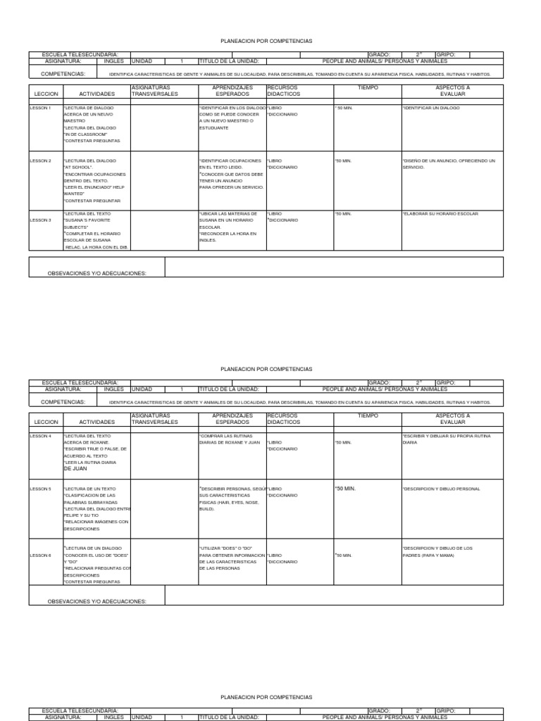 PLANEACION POR COMPETENCIAS ESCUELA TELESECUNDARIA: ASIGNATURA: INGLES COMPETENCIAS: GRADO: 2 GRIPO: PEOPLE AND ANIMALS/ PERSONAS Y ANIMALES