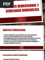 gran ola de periodo irregular que puede viajar a grandes distancias en direccin de la corriente y daara las orillas y escolleras del lecho del ro o del canal aguas abajo. Siempre que sea posible, es ventajoso evitar este rango de nmeros de Froude en tanques amortiguadores. De F1 = 20 a 80, rango de saltos hidrulicos adecuados; el salto se presenta bastante balanceado y el efecto es optimo. La disipacin de la energa (irreversibilidades) se encuentra entre el 45 y el 70%. Se puede reducir la longitud del tanque mediante el uso de deflectores y umbrales. De F1 = 80 en adelante, saltos efectivos pero bruscos; la disipacin de la energa es hasta del 85%. Pueden resultar ms econmicos otros tipos de tanques amortiguadores. Nmero de Reynolds: Este nmero es utilizado en mecnica de fluidos, diseo de reactores y fenmenos de transporte para caracterizar el movimiento de un fluido. Este nmero recibe su nombre en honor de Osborne Reynolds (1842-1912), quien lo describi en 1883. El nmero de Reynolds relaciona la densidad, viscosidad, velocidad y dimensin tpica de un flujo en una expresin adimensional, que interviene en numerosos problemas de dinmica de fluidos. Dicho nmero o combinacin adimensional aparece en muchos casos relacionado con el hecho de que el flujo pueda considerarse laminar (nmero de Reynolds pequeo) o turbulento (nmero de Reynolds grande). Los siguientes modelos son aquellos que pueden ser simulados de acuerdo al criterio de similaridad de Reynolds: Flujo en tuberas Flujo en maquinara hidrulica Movimiento de solidos dentro de fluidos, por ejemplo aviones, barcos y submarinos. Fuerzas de arrastre en pilas y objetos.