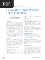 Valor elevado o en aumento es marcador de PE. Su aumento progresivo es frecuente. Uricemia Se asocia con retardo de crecimiento intrauterino La presencia de > 300 mg/da Proteinuria de 24 hs Hace diagnstico de PE Sedimento de orina La presencia de cilindros granulosos indica dao renal. en fresco La hemoconcentracin (Hto. >37%) es caracterstiHematocrito ca de la patologa. Los niveles pueden descender en caso de hemlisis (Grado de recomendacin D). Recuentos < 100.000, corresponden con la severiRecuento dad del cuadro (sndrome HELLP) (Grado de plaquetario recomendacin C). Coagulograma con fibringeno Hipofibrinogenemia slo en casos severos, con aumento de los productos de degradacin del fibringeno (PDF), especialmente complicado con DPNI o CID. Pueden aparecer esquistocitos que indican la magnitud de dao endotelial con la presencia de hemlisis.