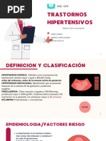 HIPERTENSIN CRNICA: Hipertensin diagnosticada antes del embarazo o durante las primeras 20 semanas de gestacin, o hipertensin que se diagnostica por primera vez durante el embarazo y no resuelve a las 12 semanas postparto. Puede ser Primaria o esencial, o Secundaria a patologa renal, renovascular, endocrina (tiroidea, suprarrenal) y coartacin de aorta.