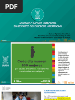 10 [Link] cada 30 40 minutos segn respuesta. La dosis mxima es de 40 mg. Slo se administrar con paciente consciente. Efecto materno: Cefalea, tuforadas. Contraindicada en >45 aos, Diabetes > 10 aos de evolucin. Efecto fetal: taquicardia. 5 mg EV (luego continuar con 5 a 10 mg EV cada 15 - 20 minutos hasta alcanzar una dosis total de 40 mg. Logrado el efecto, continuar con esa dosis cada 6 hs. Importante efecto taquicardizante materno-fetal. Se asoci a mayor incidencia de desprendimiento placentario. Utilizar slo cuando las otras drogas no estn disponibles. Bolo de 0,15 mg y luego 0,75 mg en 500 cm3. de solucin Dextrosa al 5% a 7 gotas / min. 21 micro gotas. Efecto adverso: Cada brusca de la TA, con disminucin de flujo tero placentario y compromiso [Link] de TA al suspender el tratamiento ("efecto rebote") y depresin del SNC (puede confundir prdromos de eclampsia).
