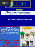 Es una relacin en la que los individuos de diferentes especies se ven afectados negativamente. Si dos especies ocupan el mismo hbitat y utilizan un mismo recurso con el paso del tiempo la especie que haya dejado mayor nmero de descendientes es la que sobrevivir, favoreciendo as la evolucin de las especies. Depredacin Es una relacin en la que uno de los dos individuos de diferentes especies sirve de alimento para el otro. El perjudicado es la presa, el otro es el depredador. Podemos incluir: el carnivorismo, el parasitoidismo, el herbivorismo y el canibalismo (el depredador y la presa son de la misma especie) Defensas de la presa frente al depredador: defensa qumica en los animales mimetismo capacidad de enrollarse en bola coloracin de advertencia tener espinas aumento del tamao de la presa Estrategias de caza de los depredadores: emboscada acecho persecucin coloracin
