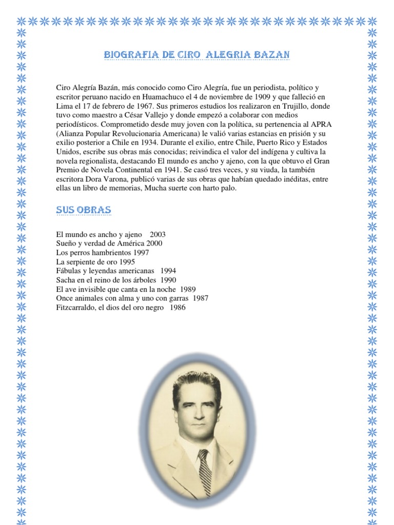 BIOGRAFIA DE CIRO ALEGRIA BAZAN