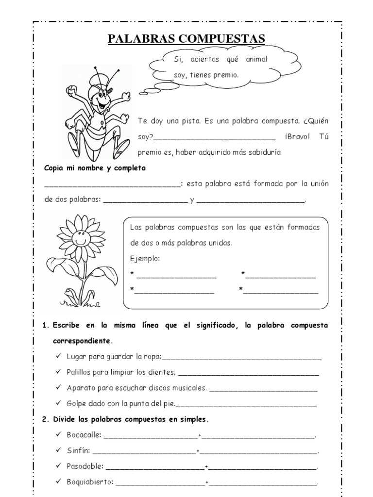 1. Escribe en la misma lnea que el significado, la palabra compuesta