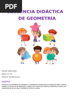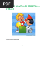 JUEGOS PARA AFIANZAR EL CONOCIMIENTO DE LO APRENDIDO Es una actividad divertida que nos ayuda a recordar lo aprendido de las figuras geomtricas y nos ayuda a trabajar la motricidad. Elaborar varios collares utilizando lana o estambre y figuras geomtricas hechas de foamy, las cuales se insertarn en el estambre a manera de collar. Se dar a cada nio un collar, y para que sea ms fcil, cada figura debe ser de unos colores especficos (por ejemplo: los crculos azules, los cuadrados amarillos, etc.) Ahora, se sientan a los nios en sus sillas formando un crculo. Uno de ellos no debe tener silla y se pondr de pie en el centro del crculo. Luego, elegir el nombre de una figura geomtrica y dir lo siguiente: ayer fui a la escuela y busqu un crculo o puede ser un cuadrado, tringulo, etc. depende de la figura que escoja). Todos los nios que tenga la figura elegida debern intercambiarse rpidamente los lugares. Tambin puede decir Ensalada de figuras y en ese momento todos los nios deben intercambiarse. El nio que se quede sin silla va saliendo.