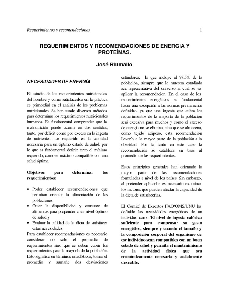 Requerimientos Energéticos y Proteínas