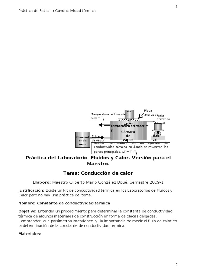 Prctica del Laboratorio Fluidos y Calor. Versin para el Maestro. Tema: Conduccin de calor