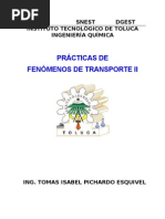 Procedimiento 1. Ponga agua en el generador de vapor (calentador) del Kit hasta alcanzar un poco arriba del 50% del volumen del recipiente. 2. Conecte el calentador y gire la perilla de control hasta el No 6 (un 80% del mximo, aproximadamente) y esperar hasta que se genere vapor. 3. Conectar el generador de vapor, con una manguera, a la cmara de vapor. 4. Seleccione una placa de material proporcionado en el kit, mida su espesor, antelo, y fjela en la base del aparato, segn indicaciones del instructor. 5. Mida el dimetro, di, del recipiente de plstico para el hielo y calcule el rea, Ai, de seccin transversal y antela. 6. Tome un trozo de hielo envulvalo en una bolsa de plstico y, en el piso, golpelo con un martillo, con cuidado para no romper la bolsa hasta obtener hielo picado. 7. Coloque el termmetro sobre la cara superior de la placa y espere hasta que la temperatura se estabilice. 8. Una vez que se cumpla la condicin de estabilidad de la temperatura en la muestra, coloque el hielo picado en el recipiente cilndrico de plstico que viene con el kit y colquelo invertido sobre la placa por la que pasar el calor proporcionado por el vapor de agua, de forma tal que el hielo est haciendo contacto directo con la placa. 9. Empiece a recolectar datos de la masa de hielo derretido cada 5 minutos durante 25 min, procurando que en cada recoleccin la masa sea medida en la balanza y anote el valor obtenido para el tiempo transcurrido. Si la cantidad de agua de hielo recolectada para el material analizado es muy pequea, cercana a 1 ml, en la primera medida, aumente el tiempo entre mediciones al doble. [Link] finalizar el experimento, vuelva a medir el rea de hielo dentro del recipiente (se habr reducido en algunos casos de materiales que permiten el paso rpido de calor a travs de ellos) y tome un rea promedio para los clculos. Antela. Actividades a realizar 1. Con las masas de hielo derretido por unidad de tiempo, m/t, y el coeficiente de calor latente de fusin del hielo, Lf, calcule la cantidad de calor por unidad de tiempo que llega al hielo Q/t con la ecuacin (2) y sustituya el valor obtenido