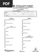 Serie III: Vocabulario. Implica este ejercicio el manejo de smbolos verbales y la riqueza de vocabulario que la persona ha logrado desarrollar en su medio ambiente. El sujeto requiere de la correcta operacin de su atencin dirigida y la comprensin de ideas o conceptos. Puntajes altos se encontrarn en personas con mayor riqueza de conceptos, manejo adecuado de un pensamiento abstracto y un nivel cultural elevado. Puntajes bajos indican pobreza de vocabulario, dificultad para expresarse o bajo nivel de lectura y cultura general. Serie IV: Sntesis El ejercicio requiere de conceptualizar los principios de las cosas a travs de una clasificacin en base a su importancia; de la organizacin misma del material, y finalmente, de la seleccin en base a una lgica establecida. Mide la calidad de la informacin lograda en el medio ambiente. Puntajes altos indican correcta formacin de conceptos y objetividad para apreciar el medio ambiente. Puntajes bajos se presentan en sujetos prcticos y muy concretos con un anlisis superficial de elementos de juicio. Serie V: Concentracin. Mide la habilidad del sujeto para manejar operaciones de tipo aritmtico. Refleja la prctica y la experiencia en manejar cantidades y problemas basados en las matemticas. Se utiliza el razonamiento de proporciones. La persona hace uso de su atencin y concentracin para entender el problema, manejarlo mentalmente y proponer las operaciones aritmticas necesarias para encontrar un resultado. Es un ndice del desarrollo cognoscitivo del sujeto. Puntajes altos indican habilidad y experiencia en el manejo de operaciones aritmticas, as como un elevado nivel de atencin y concentracin en la tarea bajo presin de tiempo. Puntajes bajos se encuentran en personas con dificultad para concentrarse en el trabajo, ansiedad ante la presin de tiempo y dificultad para manejar operaciones aritmticas. Serie IV: Anlisis. Este ejercicio tiene un contenido semejante al d~ la primera serie, encontrndose como operacin fundamental de la inteligencia la comprensin y el sentido de frases. Puntajes altos se encuentran en personas con cultura amplia, comprensin gil de la lectura y un juicio acertado de la realidad. Puntajes bajos se obtendrn de personas con dificultad en la lectura y comprensin de textos, as como una cultura o informacin limitadas. Serie VII: Abstraccin