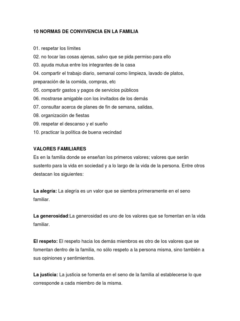 10 NORMAS DE CONVIVENCIA EN LA FAMILIA