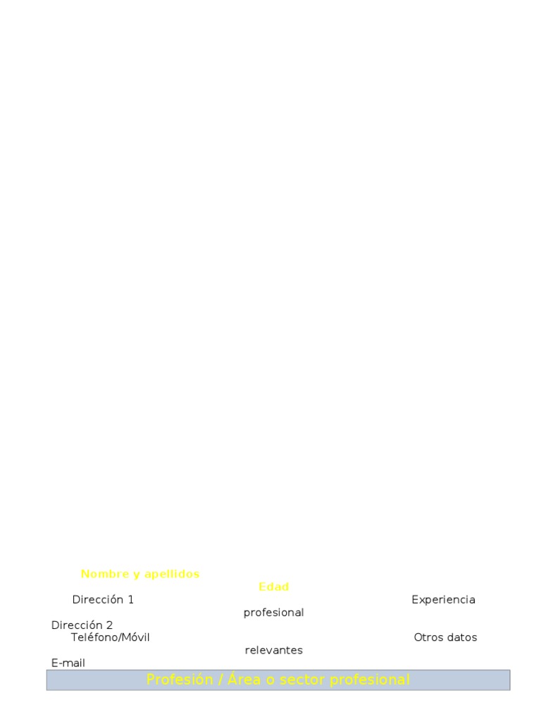 Nombre y apellidos Edad Direccin 1 profesional Direccin 2 Telfono/Mvil relevantes E-mail Otros datos Experiencia