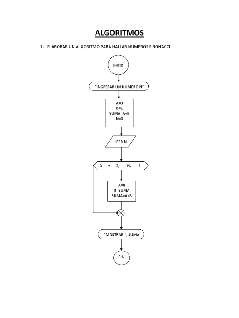 1. ELABORAR UN ALGORITMO PARA HALLAR NUMEROS FIBONACCI.