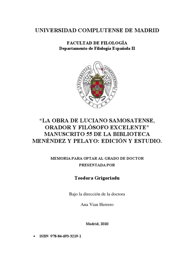 LAS OBRAS DE LUCIANO SAMOSATENSE, ORADOR Y FILSOFO EXCELENTE MANUSCRITO 55 DE LA BIBLIOTECA MENNDEZ Y PELAYO: EDICIN Y ESTUDIO